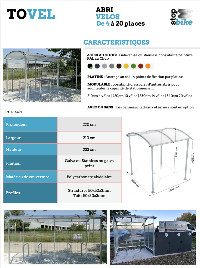 MODULABLE : possibilité d’associer d’autres abris pour augmenter la capacité de stationnement
